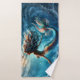 Ethereal aquatic mermaid beauty in deep blue bath towel