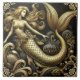 Step into a realm of enchantment with this breathtaking golden mermaid, a masterpiece blending Art Nouveau elegance with Baroque opulence. Floating gracefully against a deep black background, this ethereal siren is adorned with shimmering scales, ornate seashell accents, and flowing hair that cascades like liquid gold. Delicate yet majestic, she reaches towards a mystical ocean treasure, evoking a sense of wonder and timeless beauty. This seamless, intricate design is perfect for luxurious wall decor, artistic projects, or statement interiors. Let the magic of the sea captivate your space.
