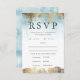 Modern and elegant wedding RSVP card featuring abstract blue watercolor painting with gold brushstroke. This response card also lists the entree selection for guests to choose from.