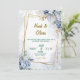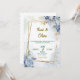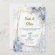 Announce your special day with this elegant wedding invitation featuring a delicate frame of watercolor-style blue and white floral arrangements accented with subtle gold details. The soft hues and botanical design evoke a romantic and sophisticated ambiance, perfect for a memorable celebration. The central white space provides ample room for your personalised wedding details.