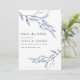 Modern botanical wedding save the date in sheer dusty blue pastel watercolor features blue foliage on the left side framing your names and wedding details.