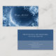Define your brand with dramatic depth and ethereal mystery using this captivating business card. The design is dominated by a deep, monochromatic navy blue atmosphere that serves as a canvas for the glowing elements. A large, softly glowing circle or sphere of light dominates the center, surrounded by scattered white stardust and delicate light trails, creating a celestial, mystical aesthetic. The foreground is richly framed by abundant velvety roses and detailed foliage, all rendered in cool blue and silver tones that contrast beautifully with the dark background. This artwork beautifully captures the magic and elegance of a frozen, midnight garden, resulting in a unique and powerful brand statement. This business card is ideally suited for a spiritual advisor or mystic offering services centered on cosmic energy and depth, a luxury spa or wellness retreat promoting tranquil, cool-toned therapies, or an exclusive event stylist specializing in twilight or celestial celebrations. It would also perfectly suit a fine jewelry designer showcasing cool-toned or icy pieces, or a boutique candle maker whose products evoke complex, mysterious scents. The card's captivating combination of deep blue color and luminous floral artistry ensures it is versatile for any sophisticated announcement, a refined gift enclosure, or an elegant invitation.