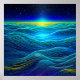 Ethereal Blue Waves and Ocean Sunset Poster