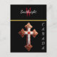 A red and white cross elegantly hangs from a wall, creating a striking and spiritual focal point in the room.