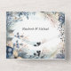 The design features a soft, ethereal arrangement of powder-blue and muted earthy tones with delicate foliage, berries, and florals encircling the edges. The frame is predominantly decorated with watercolor-style leaves, cotton flowers, and dark berries, giving it a rustic yet elegant feel. The central area is left blank, ideal for text or event details, surrounded by organic shapes that evoke a serene, autumnal mood. This sophisticated, nature-inspired motif would work beautifully for a wedding collection with a romantic, timeless atmosphere.
