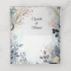 The design features a soft, ethereal arrangement of powder-blue and muted earthy tones with delicate foliage, berries, and florals encircling the edges. The frame is predominantly decorated with watercolor-style leaves, cotton flowers, and dark berries, giving it a rustic yet elegant feel. The central area is left blank, ideal for text or event details, surrounded by organic shapes that evoke a serene, autumnal mood. This sophisticated, nature-inspired motif would work beautifully for a wedding collection with a romantic, timeless atmosphere.