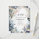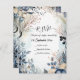 The design features a soft, ethereal arrangement of powder-blue and muted earthy tones with delicate foliage, berries, and florals encircling the edges. The frame is predominantly decorated with watercolor-style leaves, cotton flowers, and dark berries, giving it a rustic yet elegant feel. The central area is left blank, ideal for text or event details, surrounded by organic shapes that evoke a serene, autumnal mood. This sophisticated, nature-inspired motif would work beautifully for a wedding collection with a romantic, timeless atmosphere.