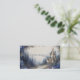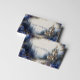 Define your brand with limitless imagination and the magical elegance of a hidden kingdom using this captivating business card. The design transports you to an ethereal, mist-shrouded pine forest, where a magnificent Gothic castle with striking blue spires sits at the edge of a clearing. The scene is dominated by layers of hazy, deep blue and slate gray trees, with a winding dirt path leading into the foreground. The forest floor is richly scattered with abundant purple, blue, and white wildflowers that create a romantic frame around the edges. The soft, luminous lighting and detailed, painterly texture convey a sense of wonder, romance, and high-end elegance that makes your card truly unforgettable. This business card is ideally suited for a luxury event planner specializing in themed celebrations or fantasy weddings, a boutique hotelier wanting to convey a magical, unique setting, or a fantasy novelist or game developer seeking distinctive, narrative-driven branding. It would also perfectly suit a fine art print seller focused on mystical or romantic works, or an exclusive floral designer emphasizing rich, abundant arrangements. The card's captivating combination of enchanted scenery and abundant blue florals ensures it is versatile for any sophisticated announcement, a refined gift enclosure, or an elegant invitation.