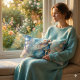 This enchanting artwork captures the essence of an ethereal goddess, draped in a flowing watercolor gown adorned with delicate floral accents. Soft blue and golden hues blend seamlessly, creating a dreamy, celestial ambiance that feels both magical and serene. Her long, flowing hair dances with the wind, crowned by intricate blossoms that enhance her natural elegance. The glowing orbs of light in the background add a whimsical, fairytale-like quality, making this piece perfect for lovers of fantasy, feminine beauty, and soft, bohemian aesthetics. A vision of grace and tranquillity, this design radiates timeless charm and mystical wonder. AI generated artwork.