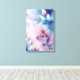 This breathtaking vertical wall art captures the delicate essence of nature through a beautiful watercolor medium. The artwork features gracefully rendered botanical branches with leaves painted in soft, cool tones of lavender, dusty blue, and blush pink. The background is a dreamy wash of blended colors, creating a light, airy, and ethereal atmosphere. This piece is perfect for adding a touch of tranquil sophistication and delicate color to a bright living area or a serene bedroom retreat
