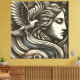 This stunning artwork features an ethereal goddess with flowing hair intertwined with a gracefully soaring dove, all depicted in an intricate engraved woodcut style. The harmonious composition blends classic linework with modern aesthetics, creating a timeless and elegant design. Perfect for those who appreciate mythology, spiritual symbolism, and artistic craftsmanship. Ideal for prints, home decor, apparel, and gifts for lovers of fantasy and nature-inspired art.