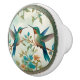 The "Ethereal Hummingbird Dance Ceramic Knob" beautifully captures the grace and agility of hummingbirds, depicted in a moment of delicate balance and harmony. The artwork features two hummingbirds with iridescent blue and green feathers, their wings captured in motion as they hover near a cluster of vibrant blossoms. The background is a soft, airy blend of pastel hues that evoke a serene sky, enhancing the ethereal quality of the scene. Framed by an intricate geometric border, the design embodies the flowing, organic lines and natural themes characteristic of the Art Nouveau style. This ceramic knob is not just a practical addition to your home but a piece of art that celebrates the beauty of nature and craftsmanship.