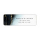 Ethereal Mist Ombre Navy Blue Watercolor Moody Wedding Design with hand painted watercolor misty wash fading background texture, gold foil look veining lines, and trails of confetti dots and edges. A trendy and Modern Look for any season, with soft dreamy colour palette : Black, Navy, Dusty Blue, White, and gold, with a chic popular brush Script lettering Font - Personalised Wedding Return Address Labels!