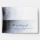 Ethereal Mist Ombre Navy Blue Watercolor Moody Wedding Design with hand painted watercolor misty wash fading background texture, rose gold foil look veining lines, and trails of confetti dots and edges. A trendy and Modern Look for any season, with soft dreamy colour palette : Black, dusty blue, grey, White, and rose gold, with a chic popular brush Script lettering Font - Personalised Wedding Monogram Envelopes with Inside Design!