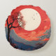 Ethereal Moon In A Red Sky Over The Mountains Round Cushion