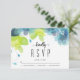 Ethereal teal, blue flowers floral wedding RSVP Card