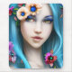 Ethereal Woman with Flowers in her Blue Hair Mouse Pad