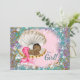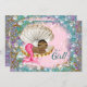 Mermaid baby shower invitations with adorable ethnic African American baby mermaid in a pretty clam shell on a beautiful purple, pink and teal blue under the sea background. You can easily customise these beautiful mermaid baby shower invitations for your event by simply adding your event details in the font style and wording of your choice. This is a printed design with no real glitter, jewels, etc.