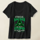 I was able to take advantage of the special Zazzle was offering of working via live chat with a designer online to create my personal T-Shirt. We used the image Zazzle had as a stock item and change the verbiage to my own. It turned out awesome. The only thing that was not up to the perfection that Zazzle usually has is that there were remnants of the old wording showing under my requested verbiage. It works because it turned out looking like "spooky" writing. But had it been any other time, it might not have worked. See photo.
