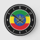 Ethiopia Flag Elegant Round Clock with the Ethiopia flag positioned in the middle and lovely white clock numbers on the clock edge. Delightful black background with the white oval elements finalise the design putting emphasis on the elegance. Beautiful combination of black and white with the skilful integration of the national flag colours make this clock the perfect gift and the great show piece on the wall. © CountriesOfTheWorld