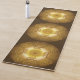 As a yoga mat, it is comfortable to use. I place a second mat under it for added comfort. But I mostly use this particular mat design for "Distance Reiki". (I am a graphic designer but I also do distance reiki work and needed something full size to work with my clients so I designed this for that purpose. The Chakras are highlighted and make it easy to place charkra stones over. I use a pendulum and tuning forks to balance the body's energy, and this helps me know, with greater detail, what part of the clients body I am connecting to when I feel fluctuations in the energy field. I am very pleased with how my design turned out. The background is very complex with color gradations and with text at the bottom. The text is readable and I am pleased with the detail in the graphics.