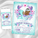 Ethnic mermaid baby shower invitations with adorable African American mermaid draped in pearls on a beautiful lavender purple and teal blue under the sea background with sea horses and sea shells. These mermaid baby shower invitations are easily customised for your event by simply adding your details. You can also change the background colour on these pretty mermaid baby shower invitations. This is a printed design with no real glitter.