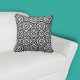 An ethnic black circle pattern decorates a square white throw pillow. Customize the pillow color, and the pattern design will show in black. Like this, you can personalize the new home gift for her, a friend. For inquiries about custom designs, contact us at https://t.me/KBMD3signs_chat.