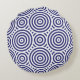 Ethnic Blue & White Geometric Circle Pattern Round Cushion