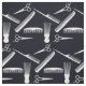 Black and white pattern classic barbershop, hair salon diverse set of hair combs, scissor pattern. Natural hair care tools.