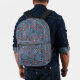 Ethnic folk abstract floral pattern retro grey blu printed backpack