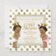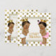 Ethnic Prince or princess gender reveal baby shower invitation with beautiful gold background and adorable little prince and princess wearing diapers and crowns on a beautiful fancy gold dot background. This cute gold prince and princess gender reveal baby shower invitation is easily customised for your event by adding your event details, font style, font size & colour, and wording. You can also change the background colour on this adorable gender reveal baby shower invitation to perfectly match your theme.