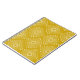 Rich ornamentation: ethnic geometry in golden yellow and white.