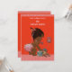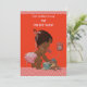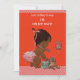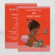 Elegant custom personalised vintage ethnic girl baby shower invitations template for African American baby girls with a beautiful vintage illustration of a cute and adorable baby girl with stylish pink diaper and a pink bow in her hair with trailing ribbons. She is talking on an old red retro telephone telling you that she is on her way! She is holding a little suitcase and her funny, quirky teddy bear is leaning against it - she's all packed up and ready for her arrival!! The background is a pretty red with a classy pink and red chevrons border. Chic, trendy, glamourous, girly, fun, fashionable, whimsical, humourous, amusing, affordable personalised / personalised custom baby shower invites templates for ethnic baby girls. Decorated on both sides. The back / reverse side has the same design. Double sided printing / front and back. If you need any assistance customising your product please contact me through my store and I will be happy to help.