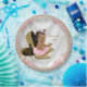 Pink and gold high heel shoe baby shower invitation with adorable ethnic baby girl wearing a pink tutu and string of pearls sitting on a pair of elegant gold glitter high heel shoes on a pretty pink and gold satin background. These adorable pink and gold baby shower paper plates are easily customised with text, or you can remove the satin background and add your own background colour. This is a printed design with no real glitter, pearls, satin, etc.