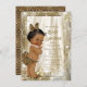 Leopard baby shower invitation with adorable ethnic baby girl wearing leopard print outfit with a string of pearls on a beautiful gold background. This elegant leopard baby shower invitation is easily customised for your event by adding your details in the font style and colour and wording of your choice. You can also remove the leopard print from the back and add colour.