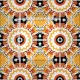 Ethnic Orange Black & White Damask Mosaic Pattern Fabric