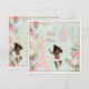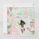 Vintage shabby chic ethnic Paris Princess ballerina baby shower invites template for African American girls' baby showers. On the front of these elegant, feminine, classy, whimsical, French Parisian Princess themed invitations is a pretty vintage art illustration of a cute and adorable dancing ethnic ballerina baby girl with stylish Princess crown, pink tutu, and ballet shoes. The background is a beautiful, stylish, colourful, girly antique altered art collage with blue and white stripes, and a faded damask pattern with a pretty, rustic, summer country garden border of pink roses flowers, ferns, dragonflies, green leaves, clocks, birds, and images of white lace, a pink Paris Eiffel Tower and fancy, ornate, pastel pink chandeliers. These cute, fun, whimsical, colourful, fashionable, trendy, floral, original and unique, glamourous Paris princess theme invitation templates are decorated on both sides / have double sided printing / printed on front and back. These gorgeous, romantic, sophisticated, contemporary, invites are a modern design with an old fashioned look. Perfect for spring and summer garden baby showers. All of the text is fully customisable to meet your needs and you can change the font style, colour and size of font if you desire. If you need any assistance customising your product please contact me through my store and I will be happy to help.