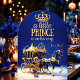 Magical Horse a Carriage Little Prince Boy Baby Shower, Royal blue and Damask Faux Ornate Gold for a baby boy. A Little Prince Is on His Way. Gold Crown. With a gold trim. Pretty vintage cute couples baby shower. Ethnic African American Baby Shower. Faux Gold Foil Baby Shower