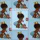 Cute ethnic vintage prince blue fabric. A beautiful vintage illustration of a cute and adorable African American baby boy with stylish blue diaper and a gold crown. He is talking on an old red retro telephone. He is holding a little blue suitcase and his quirky teddy bear is leaning against it. The background is a pretty blue colour. Perfect for to make curtains with for your new baby's nursery. If you need any assistance customising your product please contact me through my store and I will be happy to help. I have matching products in my store.