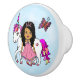 African-American, Hispanic or Bi-Racial coral, pink and blue Brown Haired Princess and Unicorn knob.