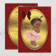 Personalised custom ethnic ballerina baby shower invites for girls. A beautiful, modern invite with beautiful red faux glitter background, a printed image or a glamourous red bow and jewel heart and elegant faux gold foil oval shape with a cute adorable African American Princess baby ballerina in a gold tiara, pink tutu and ballet shoes. Fancy cursive font. Classy, chic, feminine, girly, ornate, double sided invites for baby showers to celebrate the mum to be. All text is fully customisable / personalizable to suit your needs - lots of fonts & colours to choose from. These sophisticated, unique and original personalised, custom invitations are printed on both sides / have double sided printing. If you need any assistance customising your product please contact me through my store and I will be happy to help. PLEASE NOTE: Invites have flat printed graphics - not real glitter, foil, bows or jewels.