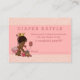 Elegant custom personalised vintage ethnic princess diaper raffle baby shower cards template, printed on business cards, for African American baby girls with a beautiful vintage illustration of a cute and adorable baby boy with stylish pink diaper, pearls, ribbons and gold crown. She is talking on an old red retro telephone telling you that she is on her way! She is holding a little pink suitcase and her quirky teddy bear is leaning against it - she's all packed up and ready for her arrival! The background is a pretty pink with a classy, modern, contemporary pink chevrons border and pink text. Chic, trendy, fun, fashionable, feminine funny, amusing, humourous, whimsical, personalised / personalised custom baby girl shower diaper raffle templates. Decorated on both sides. The back / reverse side has the same design. Double sided printing / front and back. If you need any assistance customising your product please contact me through my store and I will be happy to help.
