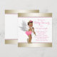 Ethnic Angel princess baby shower invitation with adorable African American ethnic angel baby girl wearing pink ruffle pants, high heel shoes and pretty string of pearls on a pink and gold pearl background. This cute and elegant pink and gold angel baby shower invitation is easily customised for your event by adding your details in the font style and colour and wording of your choice. You can also change the background colour. Printed design with no actual pearls glitter bows, etc.