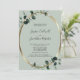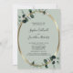 Eucalyptus All in One Website RSVP Gold Metallic Sage Wedding Invitation... Our "All in One" luxe botanical wedding invitation features a gold metallic oval frame embellished with emerald-hued eucalyptus leaves over a light sage green background. The front of the invitation also includes the wedding website where your invitees can RSVP and view all of the details normally sent in a wedding packet. This modern style wedding invitation was designed to be both elegant and budget conscious... not to mention time-saving. All example text can be easily revised with your own information on the personalisation template.