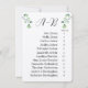 Alphabetical guest seating chart cards with subtle bright green eucalyptus sprigs. The alphabetical letters are listed at the top with the guests' names in alphabetical order below with their corresponding table number. For each card that you want to create, edit the card, then add it to your cart. Go back to the original product again, and edit your second card with names, then add it to your cart. Do this for each card that you require.