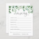 Have your shower guests fill out these adorable wishes for baby cards at your baby shower. Featuring an illustration of greenery and eucalyptus. Personalise the with Mummy-to-be's name and shower date.