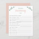 “A sweet baby girl is on her way” Celebrate the mum-to-be with this soft pastel pink and green bohemian baby shower "who knows mummy best" game featuring cute watercolor eucalyptus greenery.
