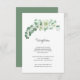 This beautiful wedding reception enclosure card features a graphic of lush greenery, eucalyptse leaves and flowers across the top.