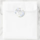 Perfect sticker for sealing bridal shower thank you notes or favours. Dusty blue roses are nestled in eucalyptus leaves that decorate a thin gold geometric frame. The bride's name is written in a large, lovely script text.