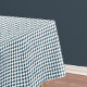 Modern, cool, chic, stylish, trendy, elegant, simple, retro, classic, eucalyptus blue and white geometric chequered chequered chequered chequerboard checks pattern, rectangular 100% cotton tablecloth. Perfect for home and party decor and for garden parties, and makes a great gift for birthday, wedding, christmas, holidays, and more. Add the perfect touch of elegance to any room, add the perfect pop of colour and accent to a party.